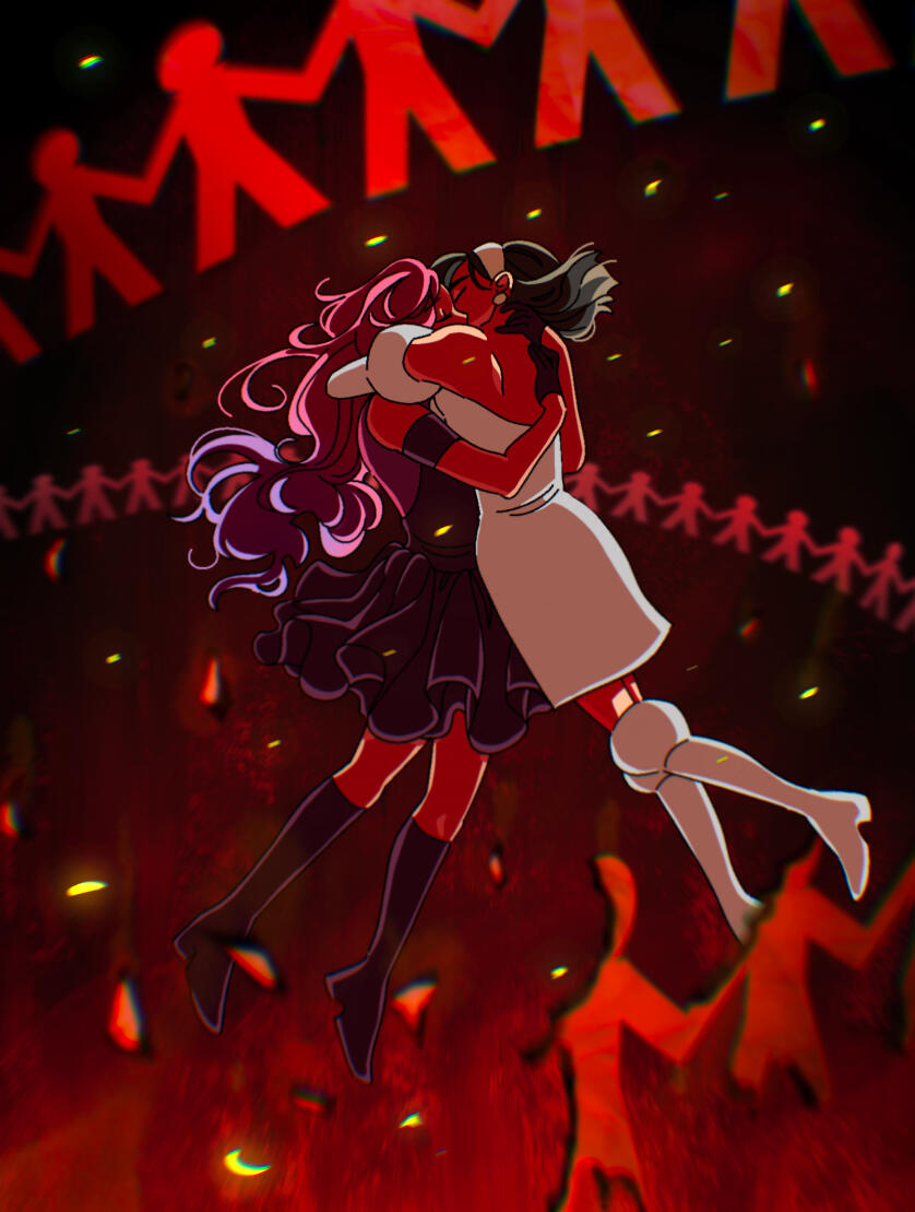 A complex illustration is anything more than a simple character portrait. This may include multiple characters in more complicated posing, interesting composition, props/environment elements, etc.